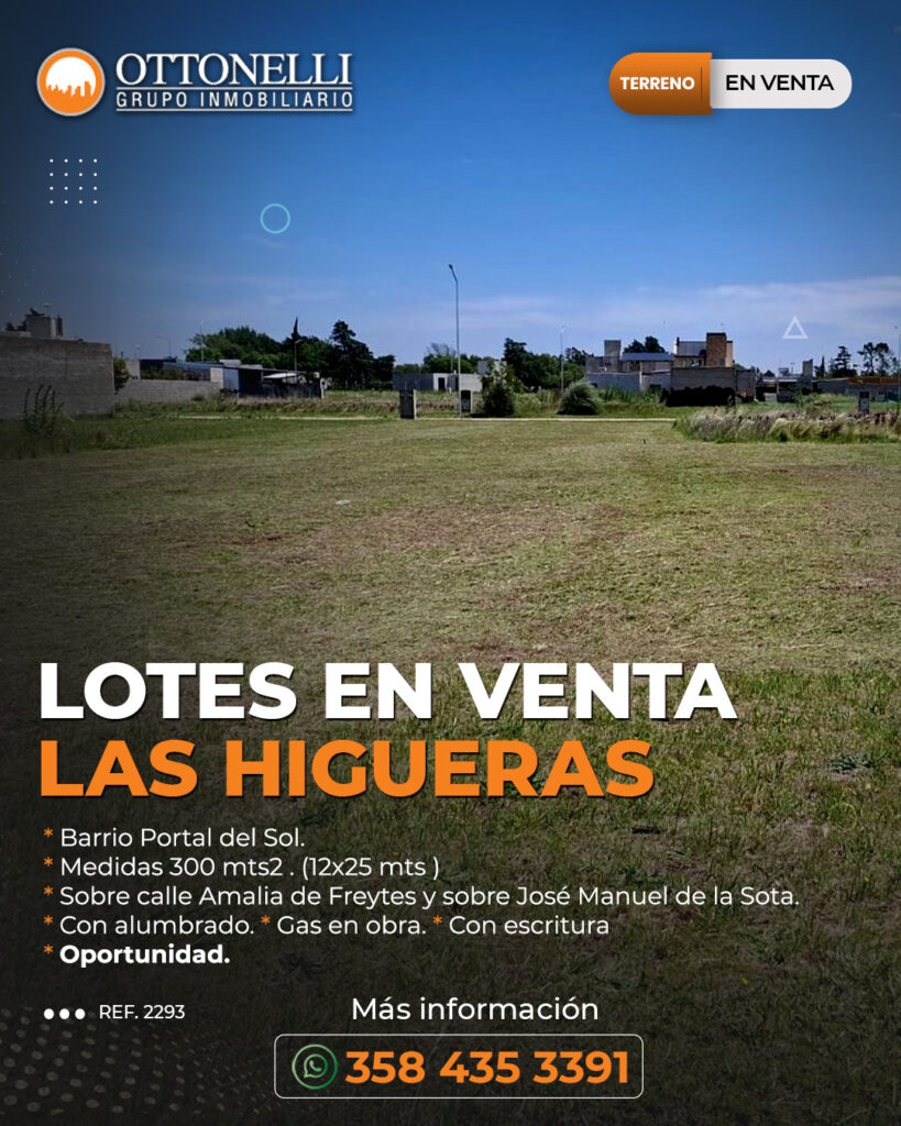 🔸 Barrio Portal del Sol. 🔸 Medidas 300 mts2 . (12×25 mts ) 🔸 Sobre calle Amalia de Freytes y sobre José Manuel de la Sota. 🔸 Con alumbrado. * Gas en obra. * Con escritura 🔸 Oportunidad.